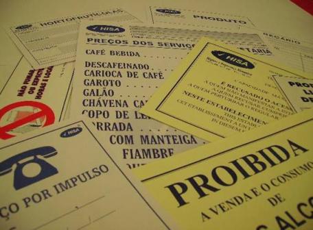 Conforme previsto no DR 20/2008 de 27-11, junto à entrada dos estabelecimentos de restauração ou de bebidas devem afixar-se, em local destacado, as seguintes indicações (A afixar no interior ou visível no exterior consoante obrigatoriedade): a) - O nome, a entidade exploradora, o tipo e a capacidade máxima do estabelecimento; b) - A existência de livro de reclamações; c) - Qualquer restrição de acesso ou permanência no estabelecimento decorrente de imposição legal ou normas de funcionamento do próprio estabelecimento, designadamente relativas à admissão de menores e fumadores; d) - Restrição à admissão de animais, exceptuando os cães de assistência; e) - Símbolo internacional de acessibilidades, quando aplicável; f) - O horário de funcionamento, período de encerramento semanal ou anual; g) - A lista de produtos disponíveis no estabelecimento e respectivos preços; h) - O tipo de serviço prestado, designadamente, serviço de mesa, self-service ou misto; i) - A exigência de consumo ou despesa mínima obrigatória, quando existente, nos estabelecimentos com salas ou espaços destinados a dança ou espectáculo. Obrigatoriamente visível do exterior do estabelecimento. Podem ser afixadas nos estabelecimentos outras informações consideradas relevantes para o público em geral, designadamente línguas faladas, existência de sistema de climatização, especialidades da casa, classificação ou distinções atribuídas ao estabelecimento. | |